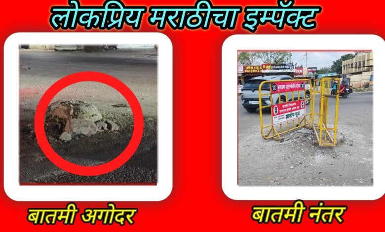 लोकप्रिय मराठीचा इम्पक्ट… बातमी येताच रातोरात काढले रस्त्याच्या मधोमधचे फाउंडेशन…