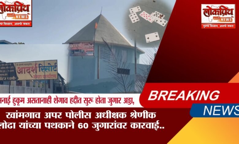 मनाई हुकूम असतानाही शेगाव हद्दीत सुरू होता जुगार अड्डा: अपर पोलीस अधीक्षक श्रेणीक लोढा यांच्या पथकाने 60 जुगारांवर कारवाई..