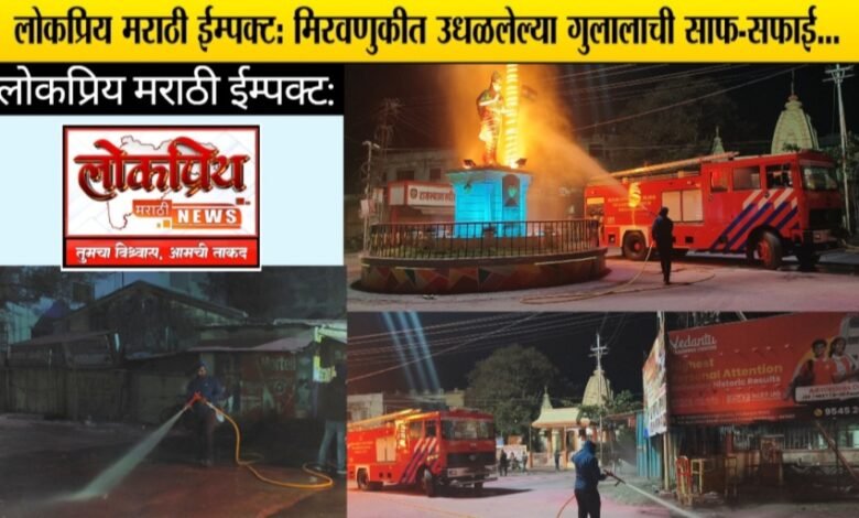 लोकप्रिय मराठी ईम्पक्ट: मिरवणुकीत उधळलेल्या गुलालाची साफ-सफाई सुरू…