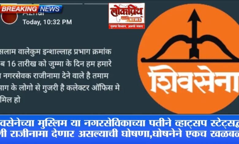 शिवसेनेच्या मुस्लिम या नगरसेविकाच्या पतीने व्हाट्सप स्टेट्सद्वारे केली राजीनामा देणार असल्याची घोषणा,घोषनेने एकच खळबळ…