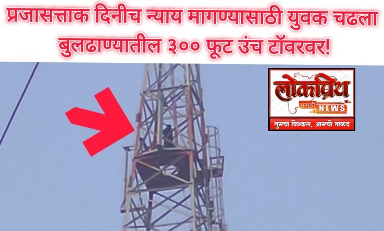 प्रजासत्ताक दिनीच, न्याय मागण्यासाठी युवक चढला बुलढाण्यातील ३०० फूट उंच टॉवरवर!