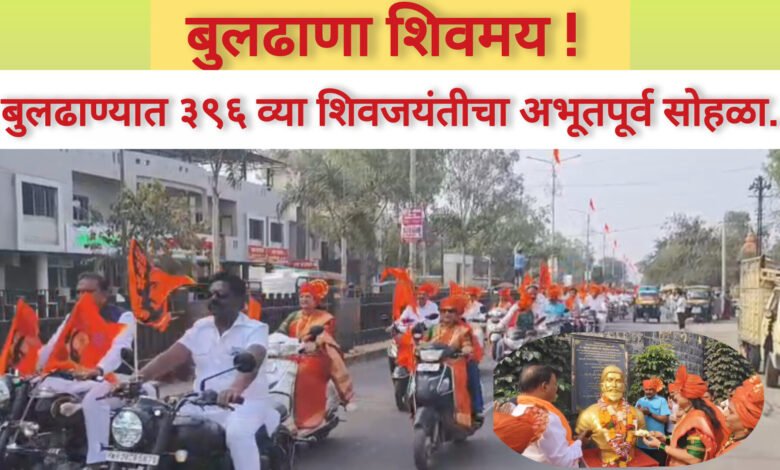 बुलढाणा: हिंदवी स्वराज्याचे संस्थापक छत्रपती शिवाजी महाराज यांच्या ३९६ व्या जयंतीनिमित्त आज बुलढाणा शहरात उत्साहाचे उधाण आले होते. सार्वजनिक शिवजयंती उत्सव समितीच्या वतीने आयोजित विविध कार्यक्रमांनी आणि सकाळी निघालेल्या भव्य मोटार सायकल रॅलीने संपूर्ण शहराचे लक्ष वेधून घेतले. सकाळपासूनच शिवप्रेमींनी ‘जय भवानी, जय शिवाजी’च्या घोषणा देत परिसर दणाणून सोडला होता.