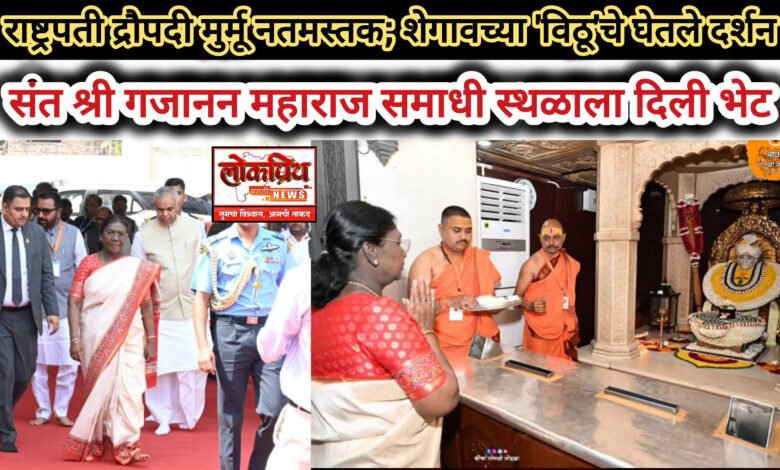 शेगाव: भारताच्या राष्ट्रपती माननीय द्रौपदी मुर्मू यांनी आज ‘विदर्भाची पंढरी’ म्हणून ओळखल्या जाणाऱ्या शेगाव येथील संत श्री गजानन महाराज यांच्या समाधीचे दर्शन घेतले. राष्ट्रपतींच्या या भेटीमुळे मंदिर परिसरात भक्तीचा महापूर लोटला होता.