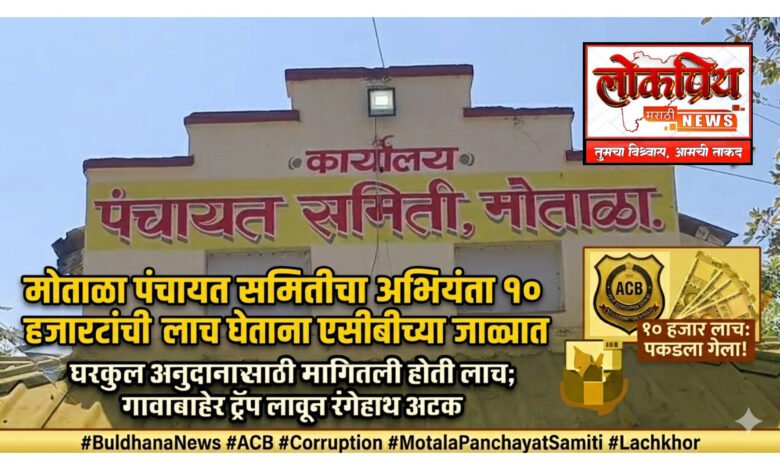 मोताळा: पंतप्रधान आवास योजनेअंतर्गत (घरकुल) दुसऱ्या टप्प्याचे अनुदान मंजूर करण्यासाठी १० हजार रुपयांची लाच स्वीकारणाऱ्या ग्रामीण गृहनिर्माण अभियंत्याला लाचलुचपत प्रतिबंधक विभागाने (ACB) आज रंगेहाथ अटक केली. सचिन इंगळे (वय २९) असे अटक करण्यात आलेल्या अभियंत्याचे नाव असून, या कारवाईमुळे मोताळा पंचायत समितीमध्ये मोठी खळबळ उडाली आहे.